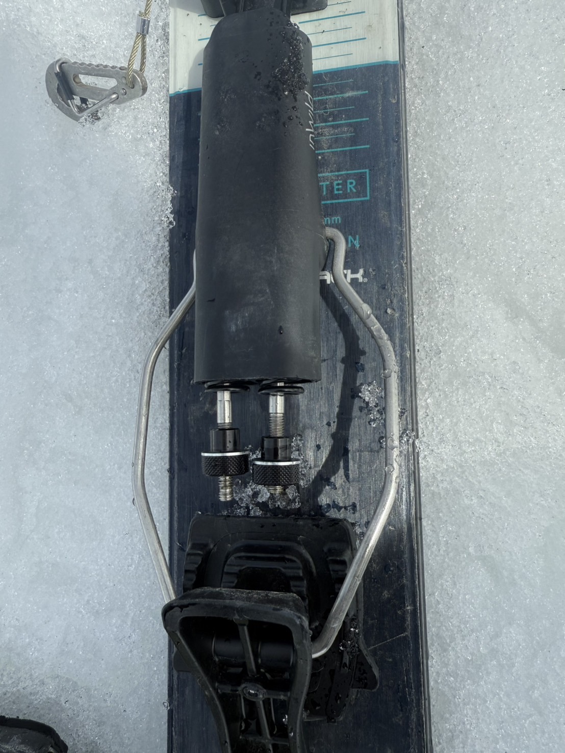 これを取り外すのは難しくはないけど、雪の上でグローブをはめた手で行うのはなかなかな作業です。